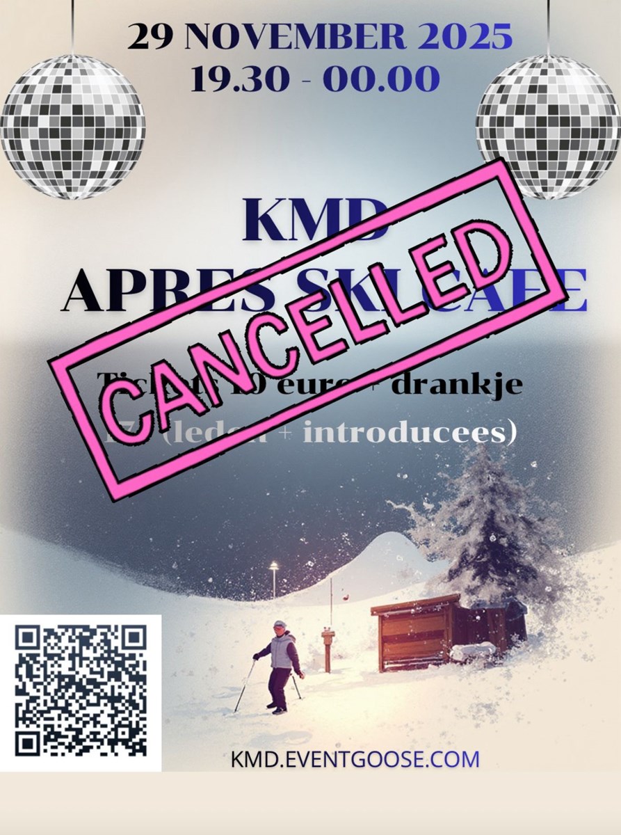 Ontzettend jammer maar door tegenvallende kaartverkoop kan het KMD apres ski café helaas niet doorgaan.