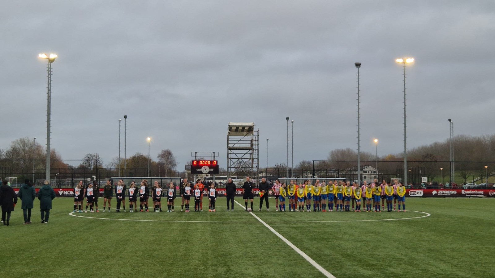 Door loting werd bepaald welk team met wie het veld op mocht; onze meiden met Jong Utrecht. Ze hadden natuurlijk gehoopt met Sparta maar het mocht de pret niet drukken.