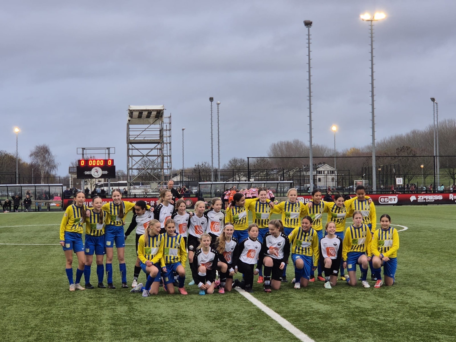 Samen met de MO13 van CCV Berkel, kregen de meiden eerst een rondleiding van een aantal speelsters van Sparta die door een blessure niet met de wedstrijd mee konden doen.